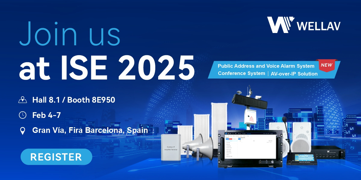 Read MoreExciting times ahead! Join WELLAV at Integrated Systems Europe (ISE) 2025! New Products/Solutions:· Public Address and Voice Alarm System· Conference System· AV-over-IP solutionBooth: Hall 8.1 / Booth 8E950Date: Feb. 4-7, 2025Venue: Gran Vía, Fira Barcelona, SpainRegister at the link using attendee invitation code: W2PGN8JWStay tuned for more exciting innovations from us!